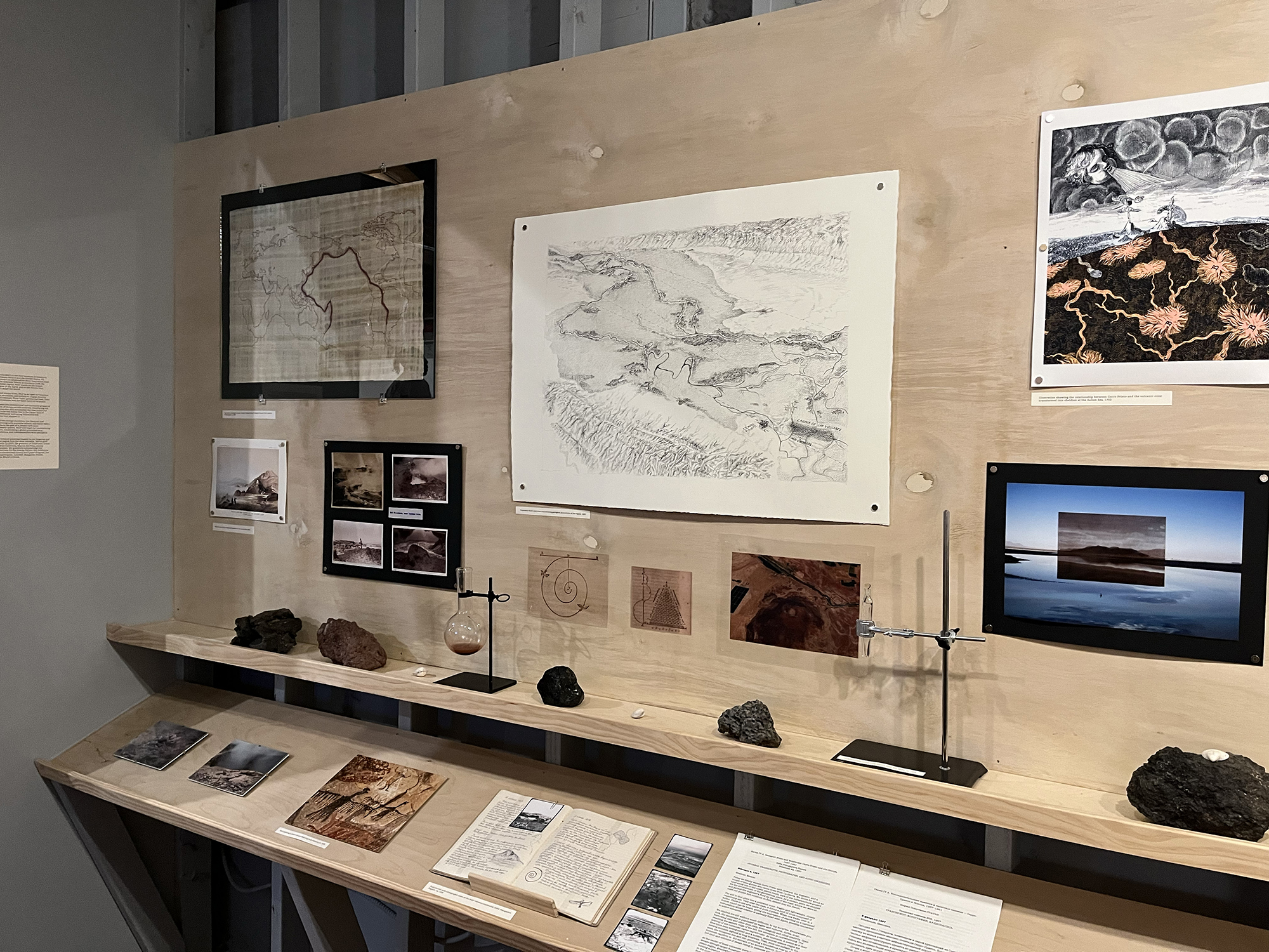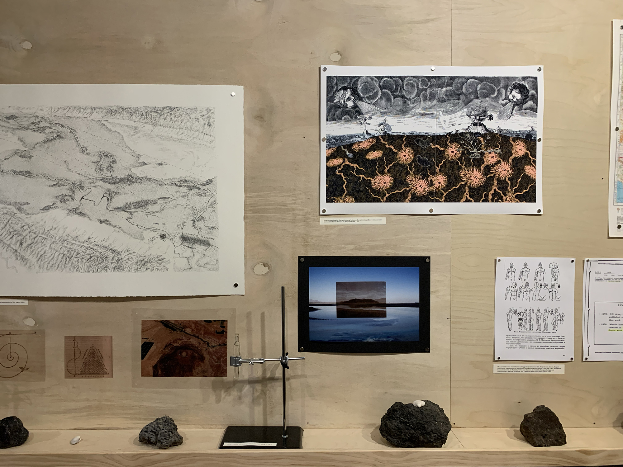 The Museum of Geological Forces (2026) proposes a visionary border-straddling museum for the vast Salton Trough, a tectonic and sedimentary basin where the Colorado River meets Mexico's Gulf of California. My diorama depicts a view from this museum's windows—a scenario in which a cooperative future of shared water and renewable energy resources is made real. This view includes the All-American Canal, the Alamo River, the Salton Sea's geothermal energy facilities and geothermal mud pots, Baja California's Cerro Prieto volcano, and a pedestrian bridge between Mexico and the United States. This project is a collaboration with the Mexicali-based artists' collective Archivo Familiar del Río Colorado and the Mexicali-based architectural firm Veintedoce. More information about the Erratic Fields exhibition here
